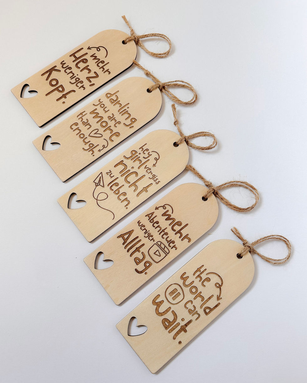 Zwischen zwei Buchdeckeln können ganze Welten entstehen, die unsere Seele berühren. Bücher öffnen Herzen, schenken Trost und Mut und eröffnen uns neue Perspektiven. Diese wundervollen Lesezeichen aus Holz bringen Wärme und Charakter in deine Lesepausen.